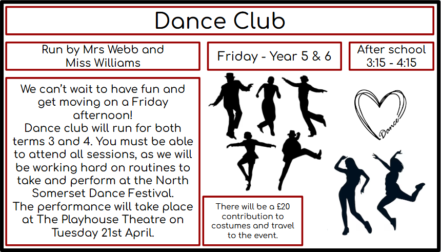 Dance club is a continuation from Term 3. We are not taking any further sign ups.