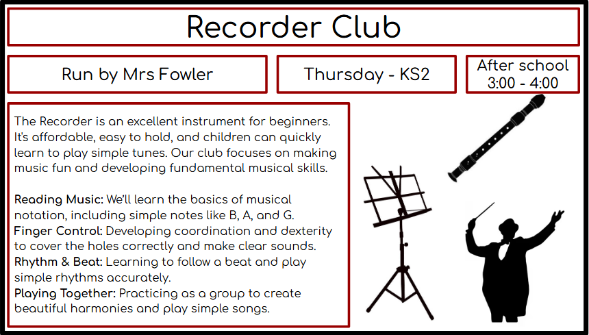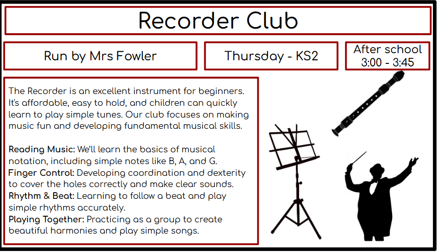 *Recorder club timings are 3:00 – 3:45
