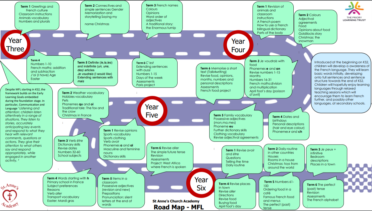 The road map below is to show the MFL curriculum as it progresses through Key Stage 2.