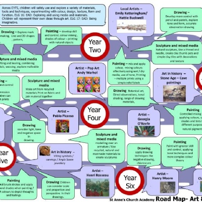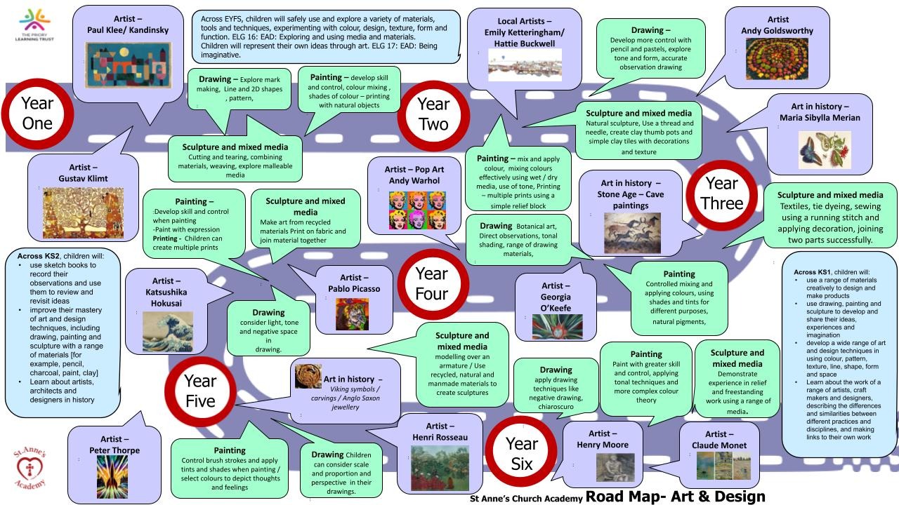 The road map below is to show the Art and DT curriculum as it progresses through the school from Reception to Year 6.